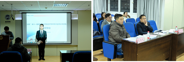 研究生第一会场由华中科技大学汪小勤教授、武汉大学赵伟副教授担任评委。选手们的选题涵盖交通设施、金融投资、农业和环境等方面,参赛选手依次上台展示各自的论文内容,其中七号选手的“主动参与还是被动选择:农户村域环境管理参与行为及效果差异分析”在五分钟的展示时间里系统地介绍了农村环境问题的解决办法。两位评委仔细听取各位选手的演讲,并详细指出各篇论文存在的问题。所有选手展示完毕后,赵伟副教授为本次论文评审会做总结:选手们的表现都非常精彩,但论文中大家都更偏向于追求高端技术的应用,却没有专业的理论支撑,仅有精美的技术不能得到有说服力的结论,希望大家能在接下来的学习中更加注重实用性和学术性。