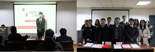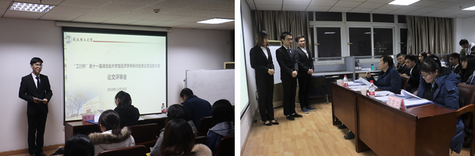 本科生第一会场由来自华中科技大学彭代彦教授和中国地质大学彭武元教授担任评委。选手们就当下的社会落户门槛对装修工“天价”工资的影响、金融科技与货币政策对商业银行的风险承担的影响、“新消费”下智能便利店盈利模式等问题一一上台展示自己的论文研究成果。其中《落户门槛对装修工“天价”工资的影响》作品惊艳评委,两位评委认真听了选手的答辩之后,指出论文中运用了大量数学工具成为此次答辩的一大亮点,但不足之处在于弱化全国各地落户分析的全局性,建议选手要在全局上多下功夫。6号选手以《“新消费”下智能便利店盈利模式研究——基于盒马鲜生与缤果盒子的分析》为论题,以宾果盒子及盒马鲜生为案例对其盈利模式及发展优势进行分析,体现逻辑性的研究思维和创新思想。白玉微瑕,评委老师启示其从商品的量化及财务分析综合来对盈利模式进行分析,给予选手新的研究思路。该选手精彩的讲解、敏捷的才思和谦逊的态度给观众和评委老师留下深刻印象。