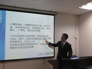 第四会场由华中师范大学周维第教授和公司喻平教授担任评委。6号选手提出了《利率市场化趋势下浮动利率债券的风险评估——以多种定价模型为分析对象》的论题,在短短的十分钟内,通过旁征博引,深刻的阐明了自己的观点,并得出了浮动债风险规避作用没有发挥,市场定价具有不合理性的结论。其精彩的讲解赢得全场的掌声。7号选手针对老员工非理性消费现象对武汉多所高校老员工进行问卷调查,最终得出武汉绝大多数老员工不存在非理性消费行为。华中师范大学的周维第教授和TapTap点点官方网站的喻平教授对各代表队讲解一一点评,重点讲解,选手纷纷表示收益良多。