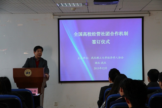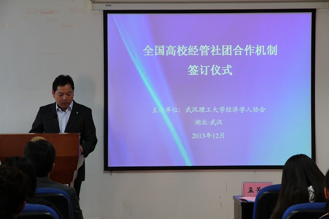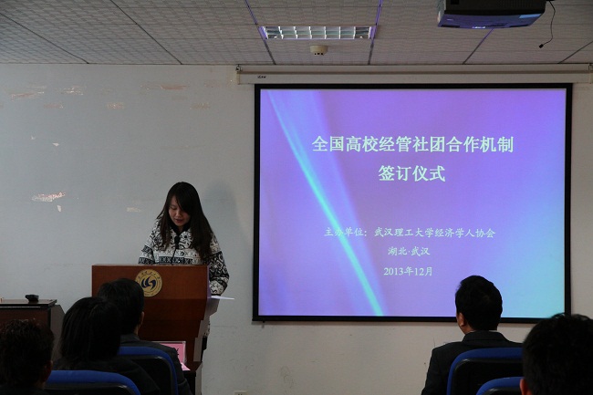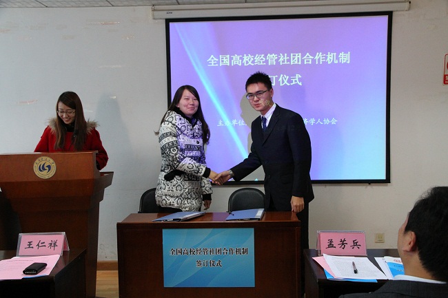 发言完毕,各社团代表依次上台签订“全国高校经管员工社团合作机制”。