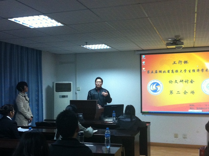 六位评委嘉宾莅临论坛指导参赛选手,期间妙语连珠,迎来阵阵掌声。六位教授现场点评并向参赛选手提出宝贵建议,并勉励在场各位同学继续努力,争取在学术上有所建树。同时,六位教授也表示,“湖北省高校老员工经济学术论坛”作为华中地区大型学术实践类员工活动为湖北省乃至全国经管类高校学子提供了一个尽显青春魅力、展现自我风采的舞台。