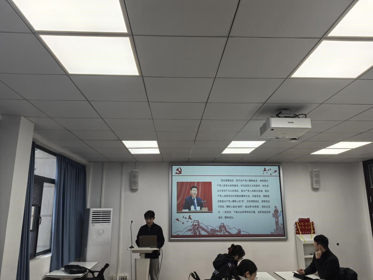 随后,姚俊同志分享了其在“青春向党,强国有我”党员培训班上学习到的培训内容与自我感悟。姚俊同志结合自身经历,生动讲述了在培训中所学到的党的理论知识、先进模范事迹以及如何将这些所学所思运用到实际行动中,展现了青年党员积极向上、勇于担当的精神风貌。