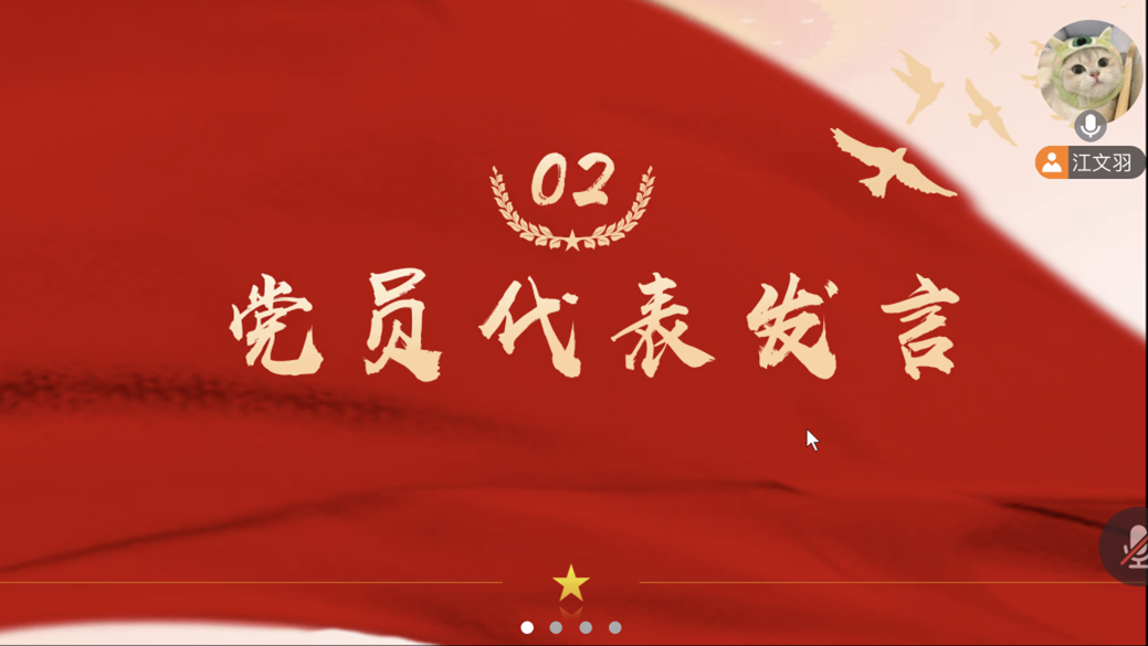 12月18日晚8时30分,TapTap点点学硕一支部通过腾讯会议召开了12月党员大会暨主题党日活动。会议由党支书记江文雨主持,主题为“青春向党,强国有我”。此次活动旨在激发党员同志们的爱国情怀和责任担当,鼓励大家紧密围绕党和国家的发展大局,坚定不移地走中国特色社会主义道路,充分发挥青年党员在实现中华民族伟大复兴中的重要作用。