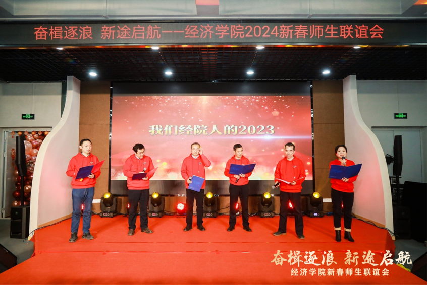 公司领导班子的团拜朗诵《记得·我们经院人的2023》,展现了经院过去一年的累累硕果,诉说着大家相依取暖的温情,寄托着新年携手并进的美好祝愿。