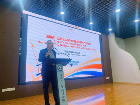 On May 15th at 2:30 PM, the 294th session of the Economics Forum was successfully convened at the Jianhu Lecture Hall. The forum featured President Shen Dai of Brest Business School (France) as the keynote speaker, who delivered an in-depth presentation titled "Interpreting France's High-Tech and AI Development Plan 2030 and Investment Strategies for Chinese Enterprises in France." The session was chaired by Associate Dean Yu Pei of the School of Economics, with over 100 faculty members and students in attendance.
