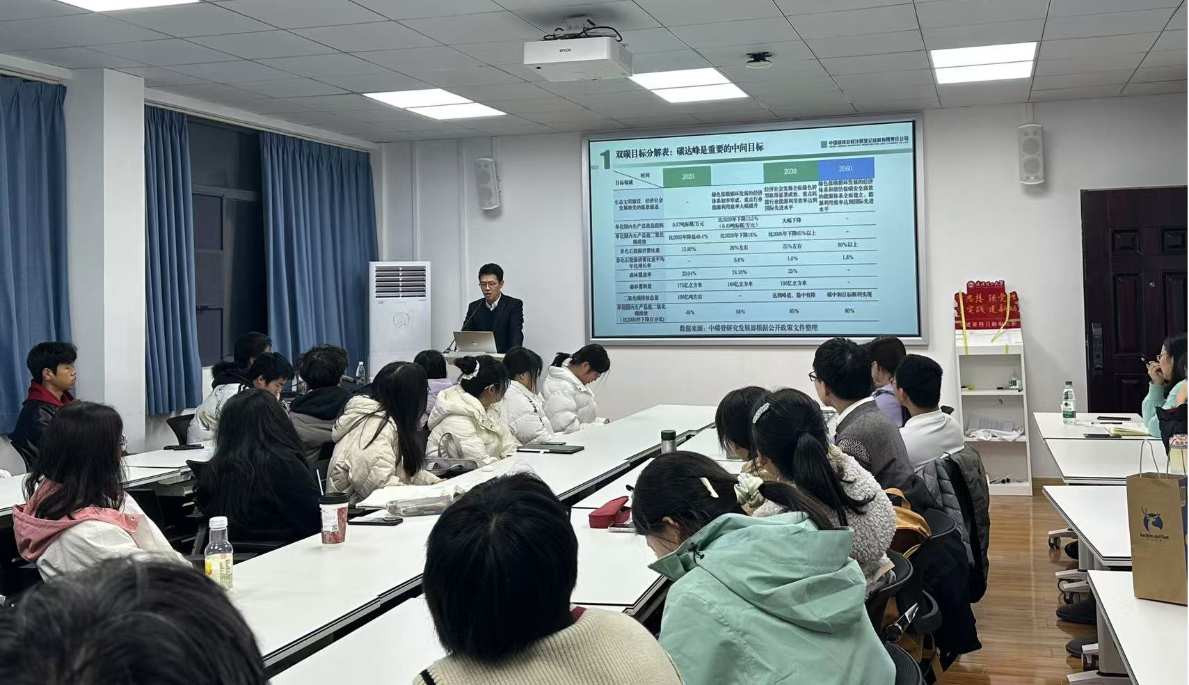 产业讲堂:中碳登专家为碳经济专业进行了“双碳目标思考”的讲座