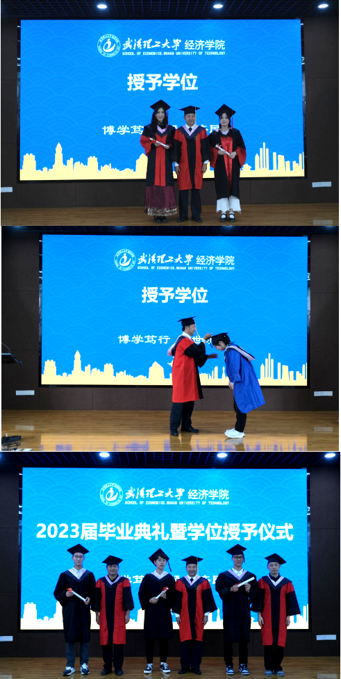 拨穗正冠,扬帆远航。在欢快的毕业歌中,院领导为全体毕业生授予学位、颁发证书、合影留念。