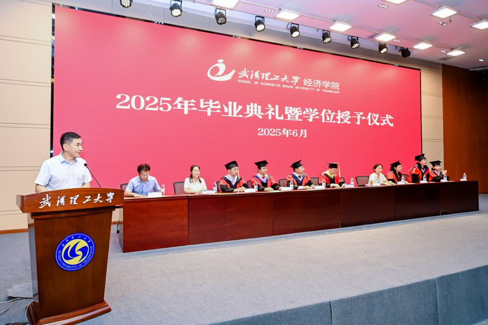 电商系危小超老师作为教师代表发言,向全体毕业生顺利完成学业致以祝贺,并在回顾与同学们相处的点滴时光中,寄语同学们积极应对生活挑战,规划好自己的人生、经世济民的情怀融入国家发展与民族复兴,奋力彰显青年一代的活力与朝气。