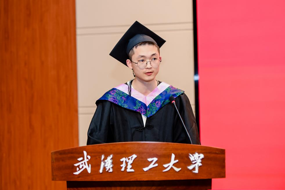 本科毕业生代表胡思宇作为员工代表发言,他代表2025届全体毕业生向公司老师的辛勤培育表示衷心的感谢,忆及老师答疑、辅导员开导、同学互助等校园温暖点滴;再祝贺全体毕业生,回顾共同经历疫情考验、汲取知识、传承“经世济民”精神的四年历程;最后表示铭记校训精神,愿做自带光热的行者,以新一代理工人的责任与担当,在青春的赛道上奋力奔跑,争取跑出当代青年的最好成绩!并祝福母校、恩师及毕业生前程似锦。