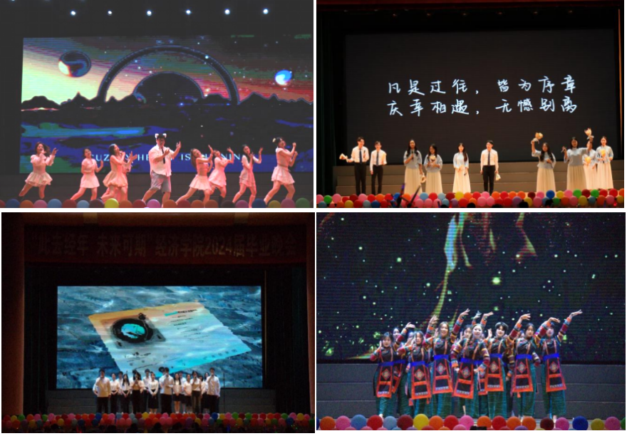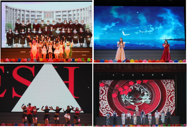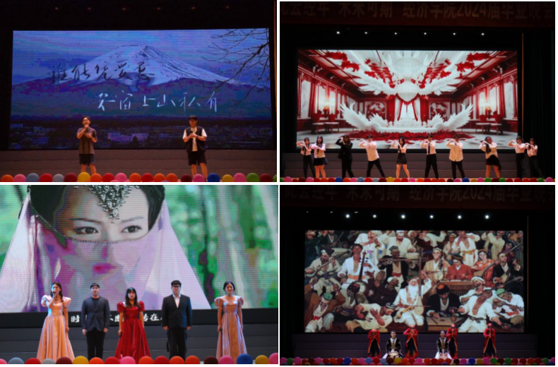 回忆往昔,同窗四年的情谊格外珍贵。各种不同却有趣的灵魂相约武理,共谱“经”年风华。文艺舞蹈《时候》以悠扬的旋律开启晚会第二篇章。歌曲《爱情转移》以绵绵细语诉说着四年里那些同窗交织的点滴情绪,创意歌舞《晚安大小姐》以整齐划一的欢乐节奏再次将晚会的氛围推向高潮,民族舞蹈《麦西来普》以极具民族特色的衣着和舞姿展现了灿烂中华民族文化的无限魅力,多人合唱的《此生不换》以共同的美好青春回忆,唱出了那些年、那些人、那些事。