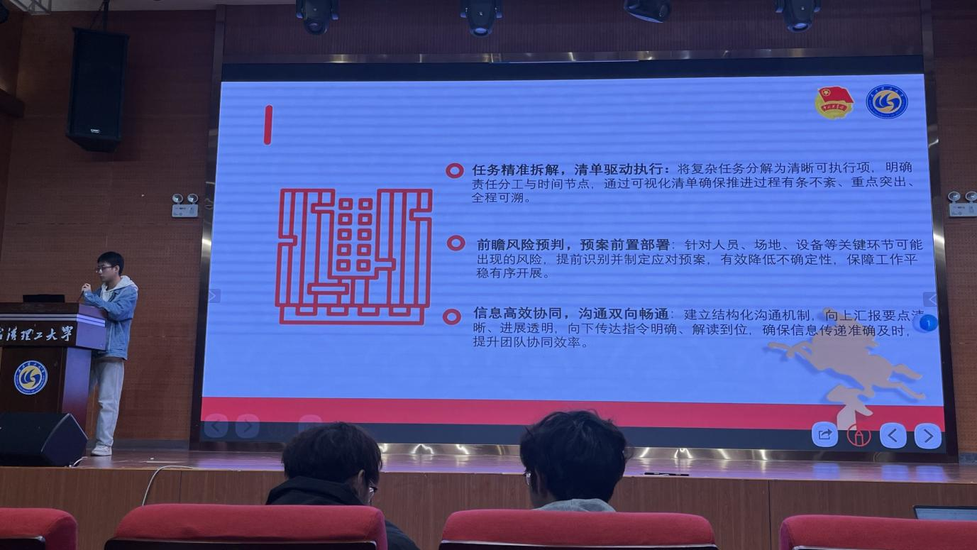 TapTap点点班级组织委员李子祺阐释了组织委员作为团支书助手、支部勤务员、团员联络员的三重角色,分享了任务拆解、团日活动组织、团员管理、高效沟通的工作方法,鼓励新生班干实现从“执行者”到“组织者”的转变。