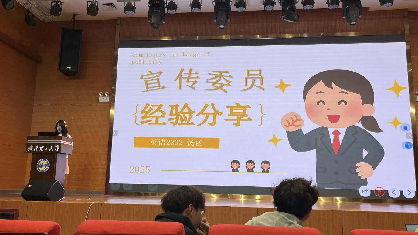 外国语公司班级宣传委员汤函从职位介绍、日常事务、新闻撰写等方面展开,重点强调按时完成新闻投稿、保障班级新闻指标的重要性,为新生宣传委员提供了细致实用的工作指引。