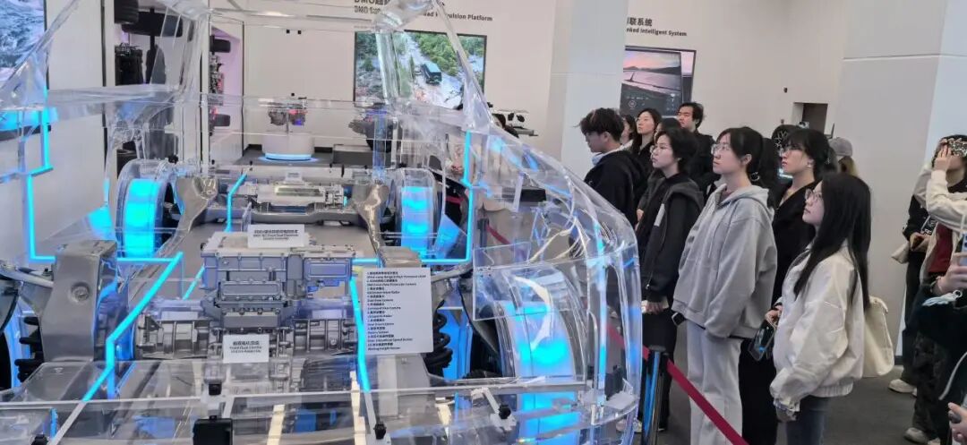 “欢迎TapTap点点官方网站一行参观学习”——当比亚迪全球研发中心一楼大厅的电子屏亮起这句标语,瞬间拉近了校企距离。在讲解员的引导下,学子们穿梭于一、二层展厅,沉浸式追溯比亚迪从单一电池制造商到“整车+储能+光伏”全生态企业的战略跃迁,深刻感受“技术为王、创新为本”的发展内核。