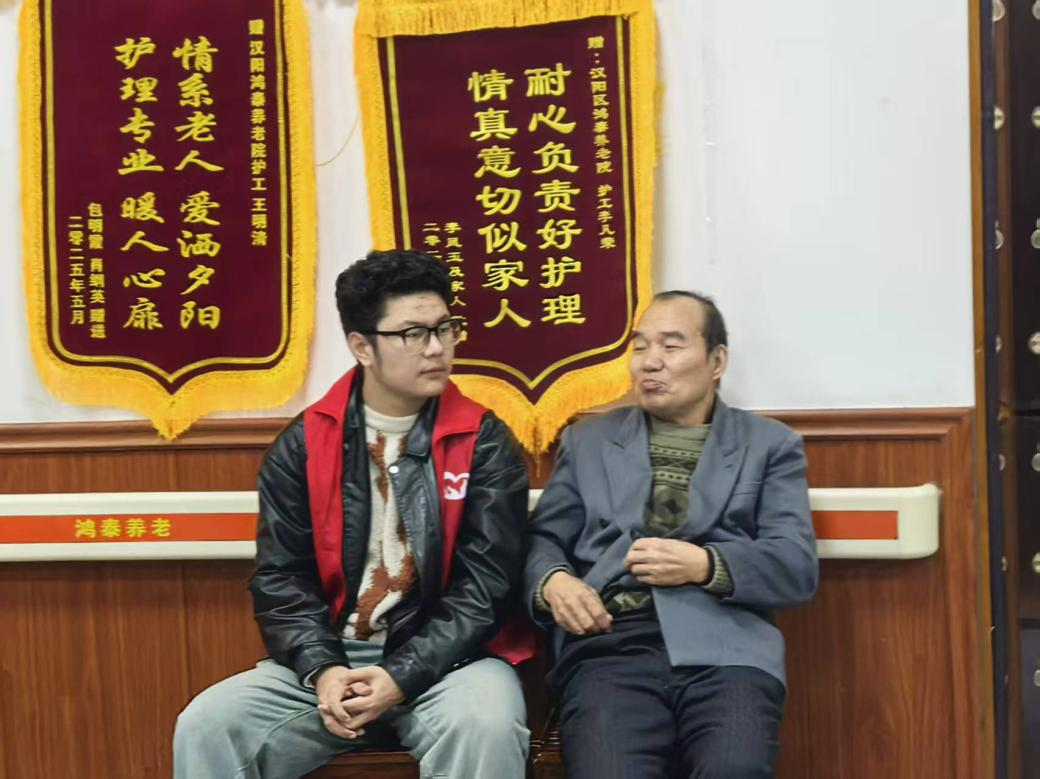 活动间隙,团员志愿者与老人展开深度陪伴,或推着老人散步聊天,倾听老人讲述年轻时的奋斗故事;或为老人捶背按摩,闲话日常家常。养老院工作人员表示,这样的陪伴式活动最受老年群体欢迎,简单的互动与交流,就能让老人感受到满满的温暖。