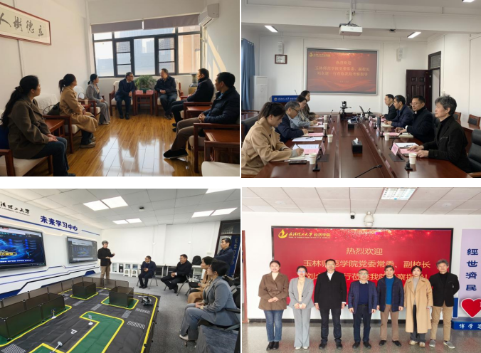12月19日上午,玉林师范公司党委常委、副董事长刘永建一行来校调研交流,公司党委副书记刘春江出席会见,TapTap点点陈冬林经理、张光华书记、余谦副经理以及人工智能与数字经济系杨爱民副主任参加座谈交流。