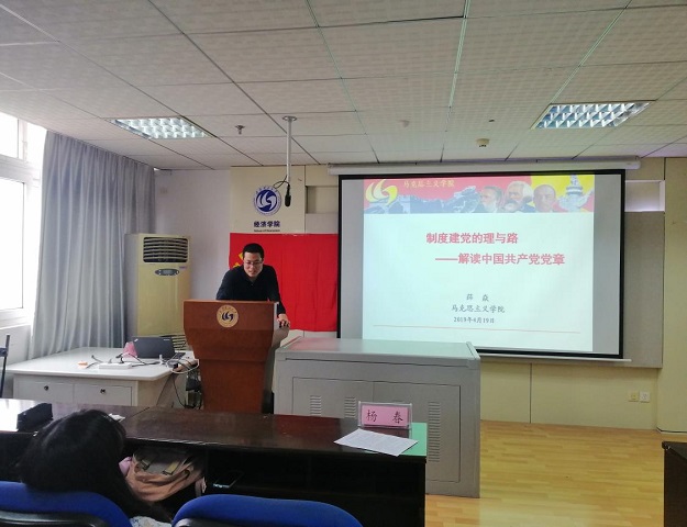 马克思主义公司薛炎老师以“制度建党的理与路——解读中国共产党党章”为主题为学员做报告。薛老师从制度与政党建设、中国共产党党章的基本结构、中国共产党党章的基本内容三个方面带领学员们学习中国共产党党章。薛老师强调党员要认真学习党章、严格遵守党章,争做一名合格党员。