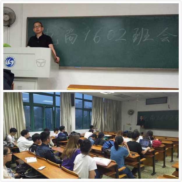 首先班主任刘平峰对这学期目前为止的班级情况做了总结表述。本学期电商1602班学习氛围比上学期要浓厚,这一部分得益于寒假时要求每个人写的个人规划,有了目标后学习都更加自觉勤奋。随后班主任着重强调了坚决杜绝高考替考和考试作弊行为。高考替考现已上升为犯法行为, “无论从法律方面还是从道德方面来看,大学都应该做到诚信考试。”他说道。